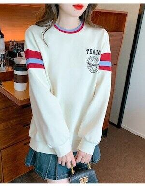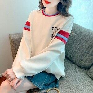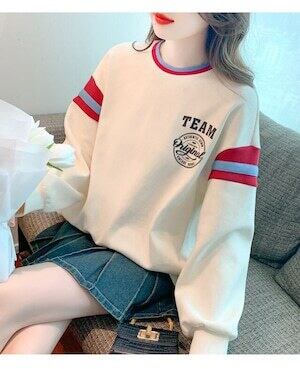 ワンポイントトレーナー パーカー ラウンドネック カジュアル ガーリー E528