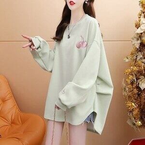 チェリー柄トレーナー プルオーバー ビッグシルエット ガーリー E479