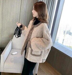 ノーカラーコート もこもこ ショート丈 カジュアル ガーリー E578
