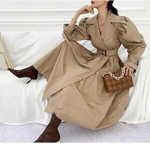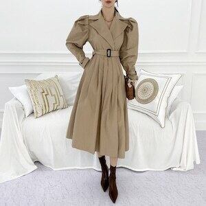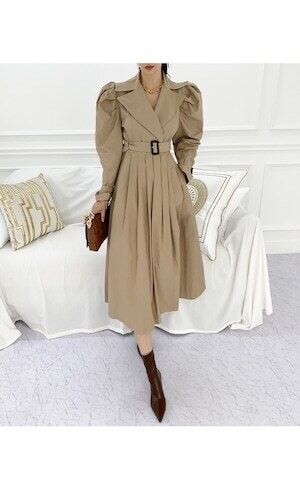 プリーツトレンチコート ロングコート パフスリーブ ガーリー お呼ばれ E460