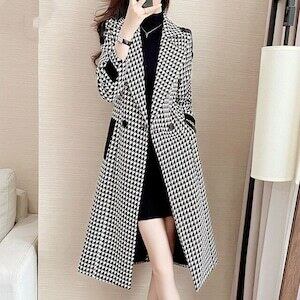 千鳥格子柄ジャケット ロングコート アウター エレガント E455