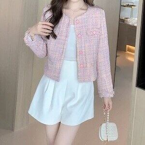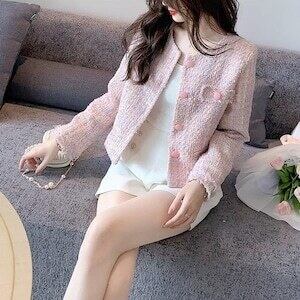 ツイードジャケット ノーカラー フェミニン ガーリー お呼ばれ E591