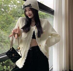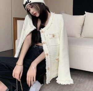 ノーカラージャケット ツイード ゴールドボタン ミディ丈 きれいめ E574
