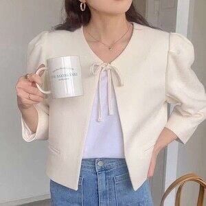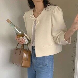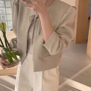 リボンジャケット ノーカラー お呼ばれ エレガント E509