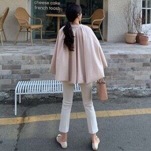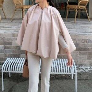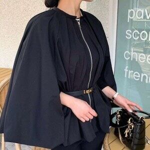 ケープジャケット ノーカラー ベルト付 エレガント E508