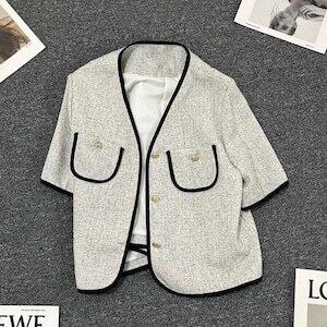 ノーカラージャケット ゴールドボタン カーディガン エレガント E442
