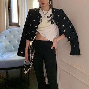 スタッズジャケット ハートモチーフジャケット ショート丈 ジャケット ガーリー E174