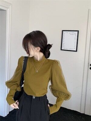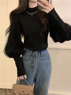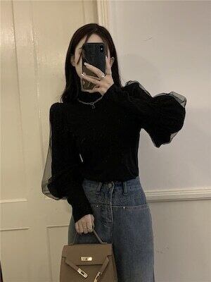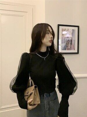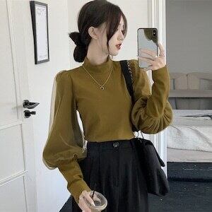 ボリューム袖トップス チュール 長袖 エレガント フェミニン E534