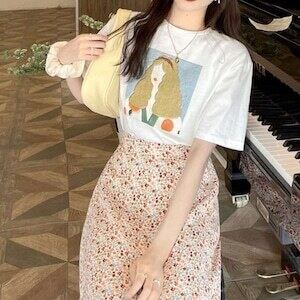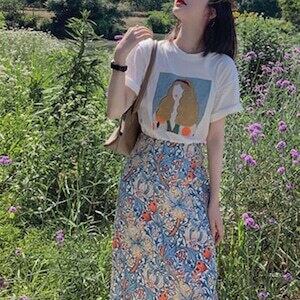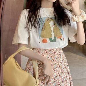 プリントTシャツ 絵画風 レトロT 半袖 カジュアル E405