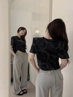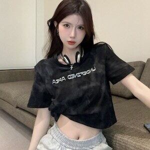 デザインTシャツ ショート丈 ロゴT カジュアル E370
