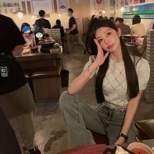 ショート丈トップス サマーニット ビジュートップス デート E352