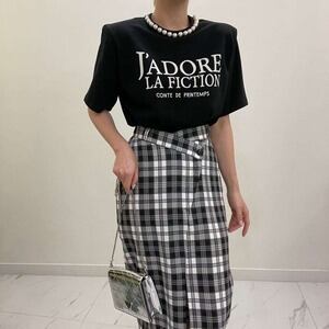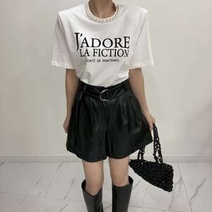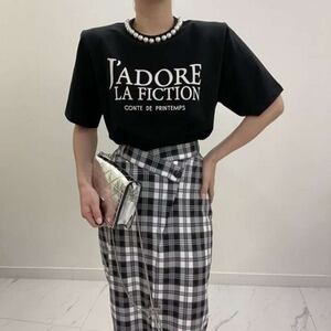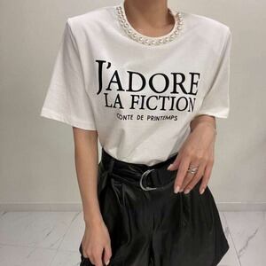 パールモチーフTシャツ レタリングTシャツ ビッグロゴ 半袖 エレガント ママコーデ E246