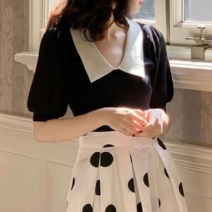 パフスリーブトップス パフスリーブニット カラーニット エレガント ガーリー オフィスカジュアル E200