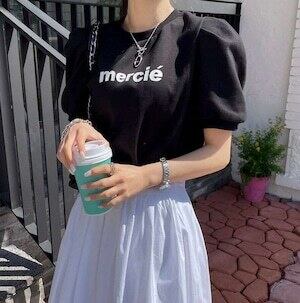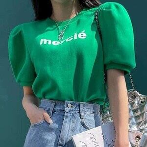 パフスリーブTシャツ ロゴTシャツ カジュアル ガーリー E162