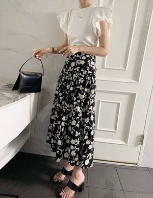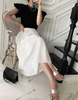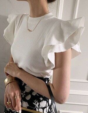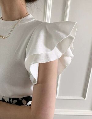 袖フリルトップス トップス ガーリー オフィスカジュアル E088