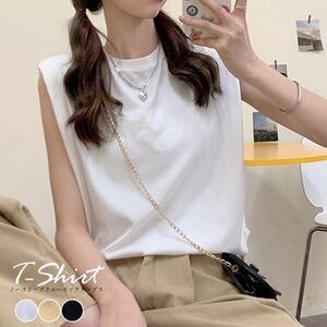 ゆったりシルエットでラフに着こなせるノースリーブカットソー