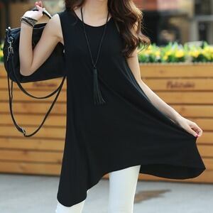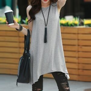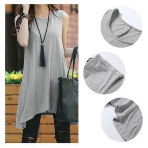 ロングtシャツ レディース ゆったり Aラインフレアトップス ノースリーブ D430