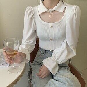 女性らしさが引き立つオシャレなチョーカー風ニットトップス