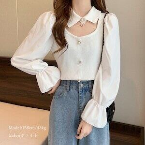 チョーカー風ニットトップス 袖切り替え D427