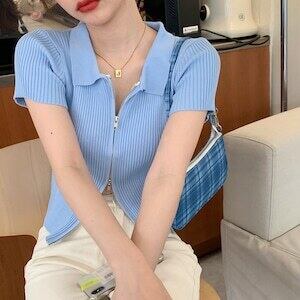 ボディラインを美しく見せる伸縮性抜群のニットトップスです。