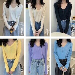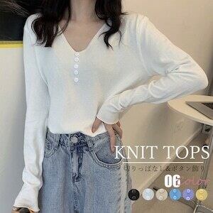 Vネック ニットトップス レディース D405