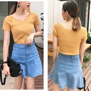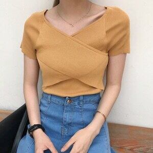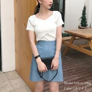 サマーニット Vネック カットソートップス D396
