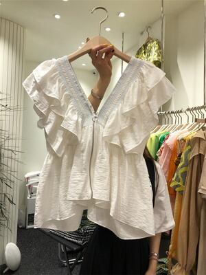 シャツ オシャレ ブラウス フリル Vネック スリム D1960