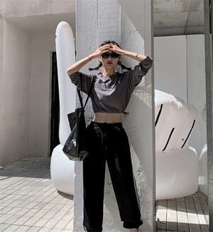 スリム Tシャツ トップス 上着 ヒップホップ ロングスリーブ 短いスタイル D1957
