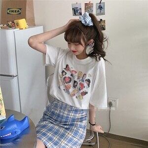 リトルプリンセス 漫画 Tシャツ プリント ゆったり ラウンドネック D1952