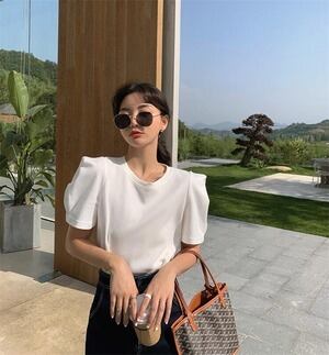 オシャレ パフスリーブ カジュアル 半袖 Tシャツ D1948
