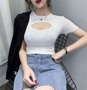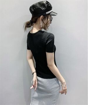 おしゃれ スリムフィット Tシャツ ラウンドネック D1942
