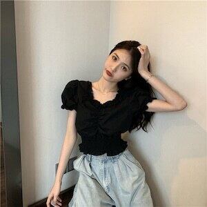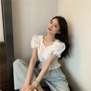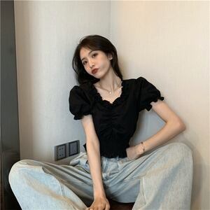 ブラウス レトロ パフスリーブ ガーリー フリル D1939