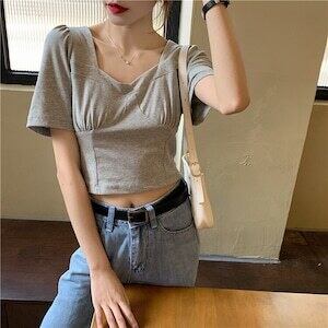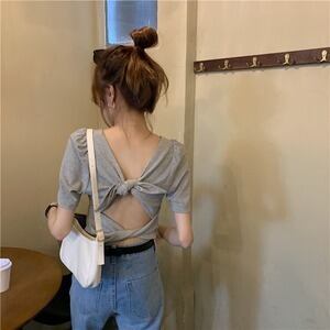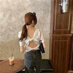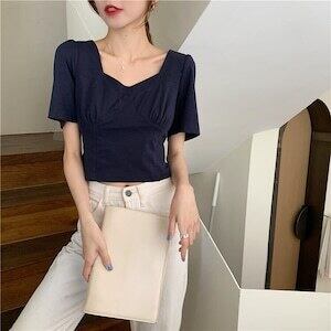 韓国ファッション 背透けて カジュアル トレンド 透かし彫り スクエアネック 夏 シンプル レトロ D1936