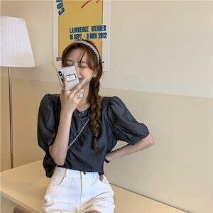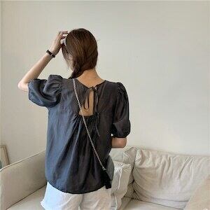半袖 デザインセンス 透かし彫りバンディング シフォンブラウス D1935