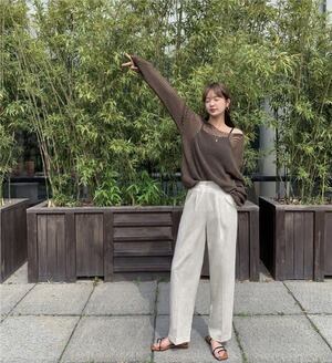 トップス レトロ スリム サマーニット シンプル D1932