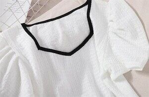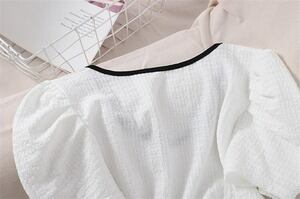 INSスタイル ファッション スクエアネック Tシャツ スリム パフスリーブ D1925