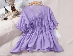 ブラウス ゆったり シアートップス シャツ Vネック D1924