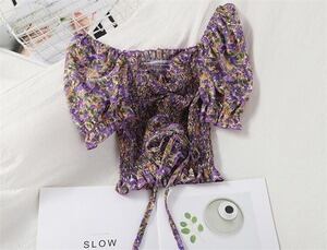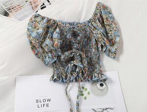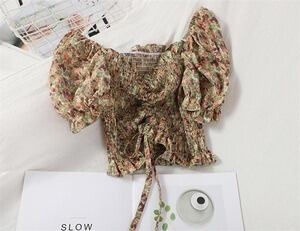 INSスタイル ファッション オフショルダー オープンウエスト パフスリーブ D1913
