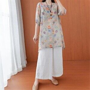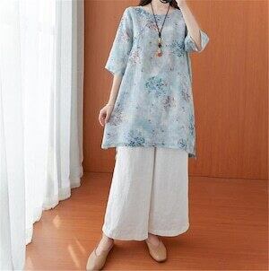 トップス エスニックスタイル レトロ シンプル プリント ラウンドネック D1910