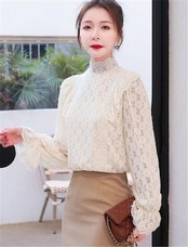 韓国ファッション 長袖 タートルネック レース シャツ トップス D1890