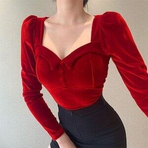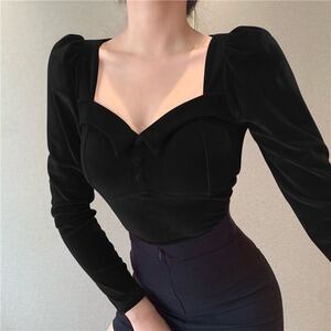 トップス Tシャツ スクエアネック 長袖 トップス スリム D1885