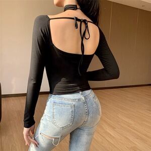 トップス ストリート コントラストカラー スクエアネック カジュアル D1883