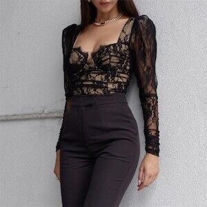 欧米風 レーヨン レース 長袖 トップス セクシー D1867