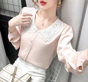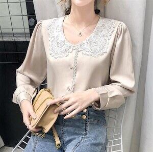 韓国ファッション レースの襟 長袖 シフォンシャツ sweet系 スリム ゆったり D1863