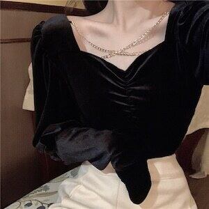 パフスリーブ シャツ スクエアネック チェーン スリムフィット トップス D1857