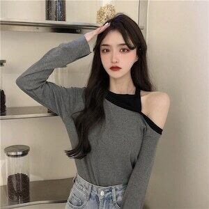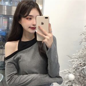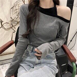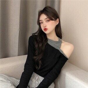 スリム オフショルダー 長袖 Tシャツ セクシー D1840
