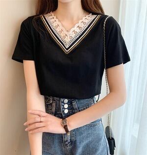 韓国ファッション Vネック 半袖 Tシャツ sweet系 D1839