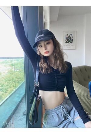 韓国ファッション Vネック 長袖 Tシャツ オープンウエスト タイト スリム D1835