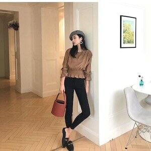 長袖 オシャレ ラウンドネック エレガント D1833