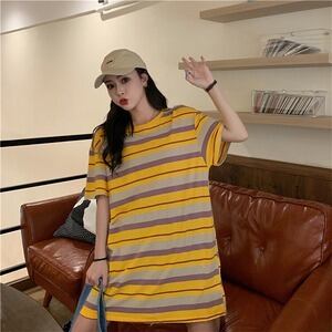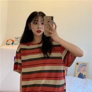 韓国ファッション カジュアル ボーダー 半袖 Tシャツ D1831